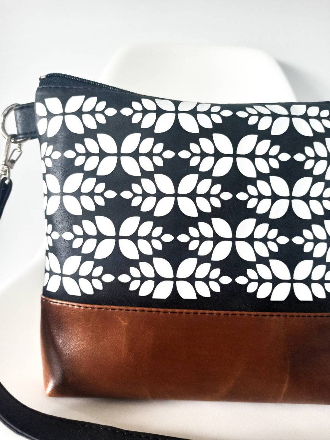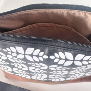 * Black zipper closure